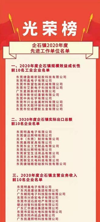 3月3日上午,企石鎮(zhèn)召開2020年度工作總結大會,發(fā)布了《企石鎮(zhèn)2020年度先進工作單位名單》,包括《2020 年度企石鎮(zhèn)規(guī)模效益成長性前10名工業(yè)企業(yè)名單》《2020 年度企石鎮(zhèn)實際出口總額前10名企業(yè)名單》《2020 年度企石鎮(zhèn)主營業(yè)務收入前10名企業(yè)名單》等10份名單。會議對2020年度企石鎮(zhèn)主營業(yè)務收入前10名企業(yè)進行了現(xiàn)場表彰。新望公司有幸入列:企石鎮(zhèn)2020年度規(guī)模效益成長性前10名。