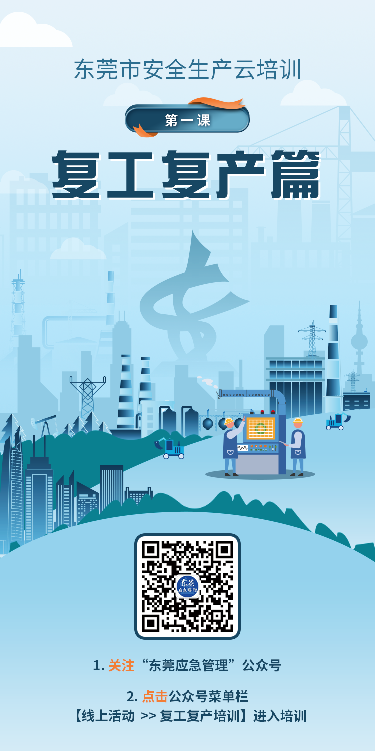 春節(jié)后復(fù)產(chǎn)復(fù)工階段,屬于各類生產(chǎn)安全事故易發(fā)高發(fā)時期,為全面貫徹落實上級關(guān)于做好當(dāng)前安全生產(chǎn)工作的系列決策部署及春節(jié)假期后安全復(fù)工復(fù)產(chǎn)的工作會議精神,切實抓好節(jié)后復(fù)工復(fù)產(chǎn)各項安全防范工作,堅決防范和遏制較大及以上生產(chǎn)安全事故發(fā)生,根據(jù)《廣東省應(yīng)急管理廳關(guān)于印發(fā)<廣東省應(yīng)急管理廳春節(jié)后復(fù)工復(fù)產(chǎn)安全生產(chǎn)線上線下指導(dǎo)服務(wù)工作方案>的通知》 (粵應(yīng)急辦 (2021) 11 號)、《關(guān)于做好節(jié)后復(fù)工復(fù)產(chǎn)安全防范工作的通知》(粵安辦 (2021) 21 號)等相關(guān)要求,市應(yīng)急管理局決定組織開展安全生產(chǎn)云培訓(xùn)“第一課”——節(jié)后復(fù)工復(fù)產(chǎn)在線培訓(xùn)活動。