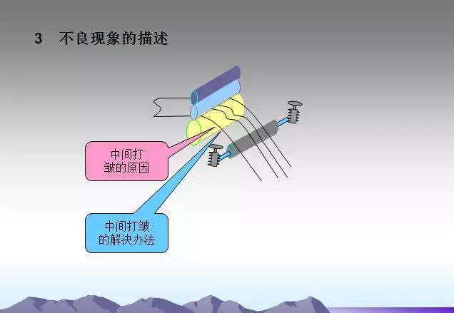 過(guò)輥之間平行度超差會(huì)造成箔帶打皺,須仔細(xì)檢查究竟是垂直投影面不平行還是水平面不平行,然后加以調(diào)整